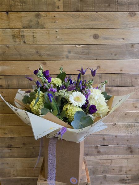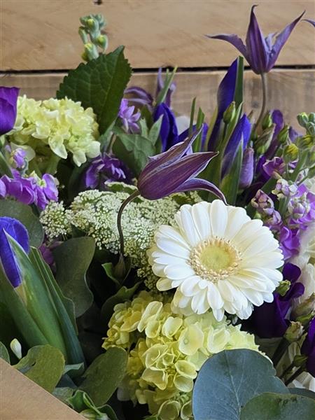This arrangement is a Florist's Choice arrangement, the photo is for guidance on the style of the bouquet only