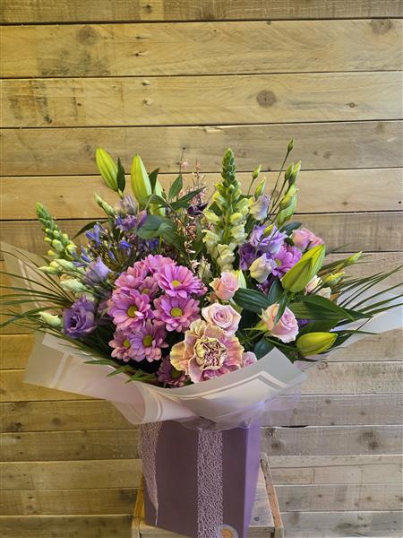 This arrangement is a Florist's Choice arrangement, the photo is for guidance on the style of the bouquet only